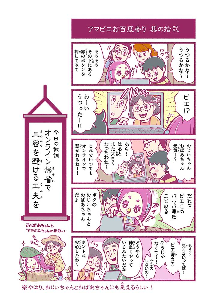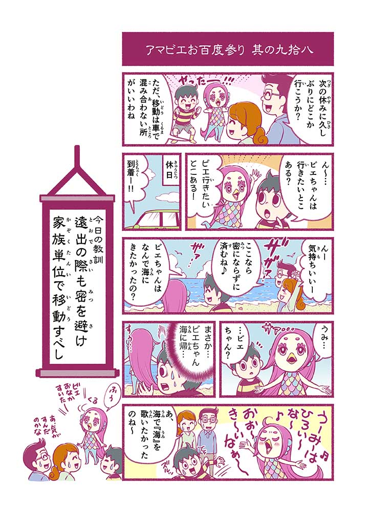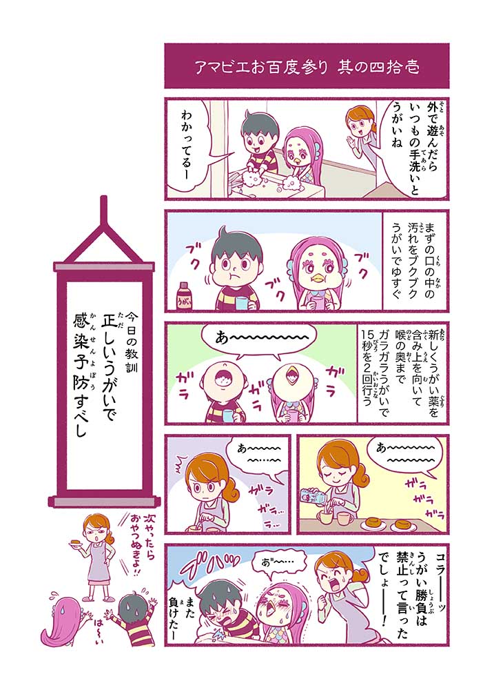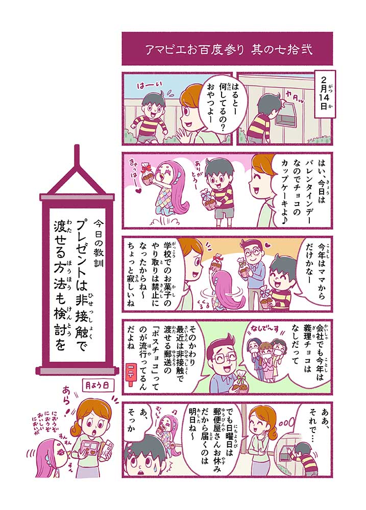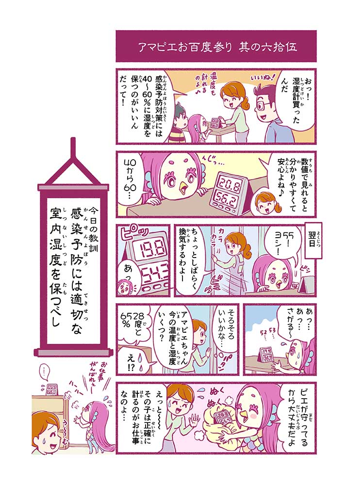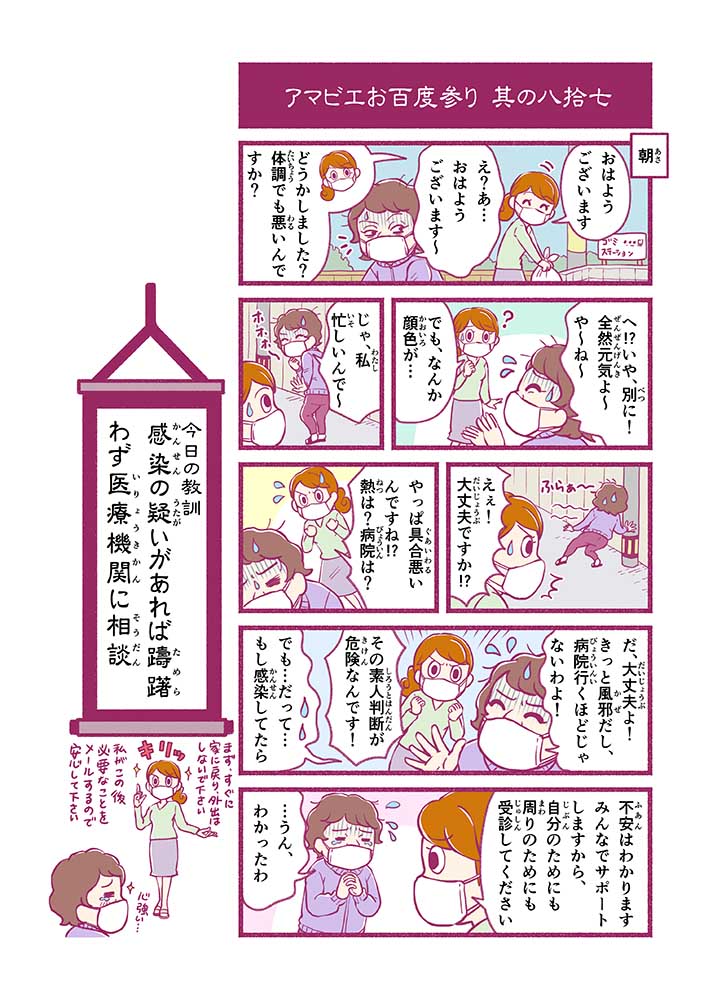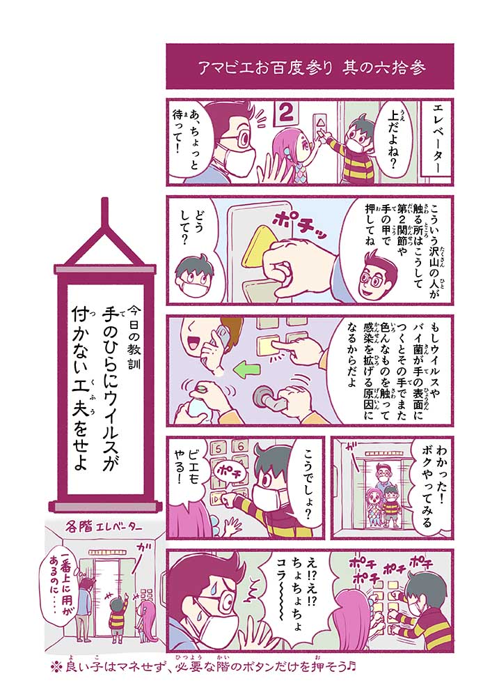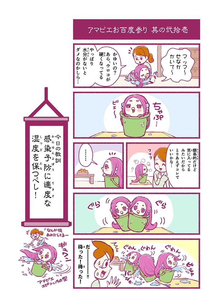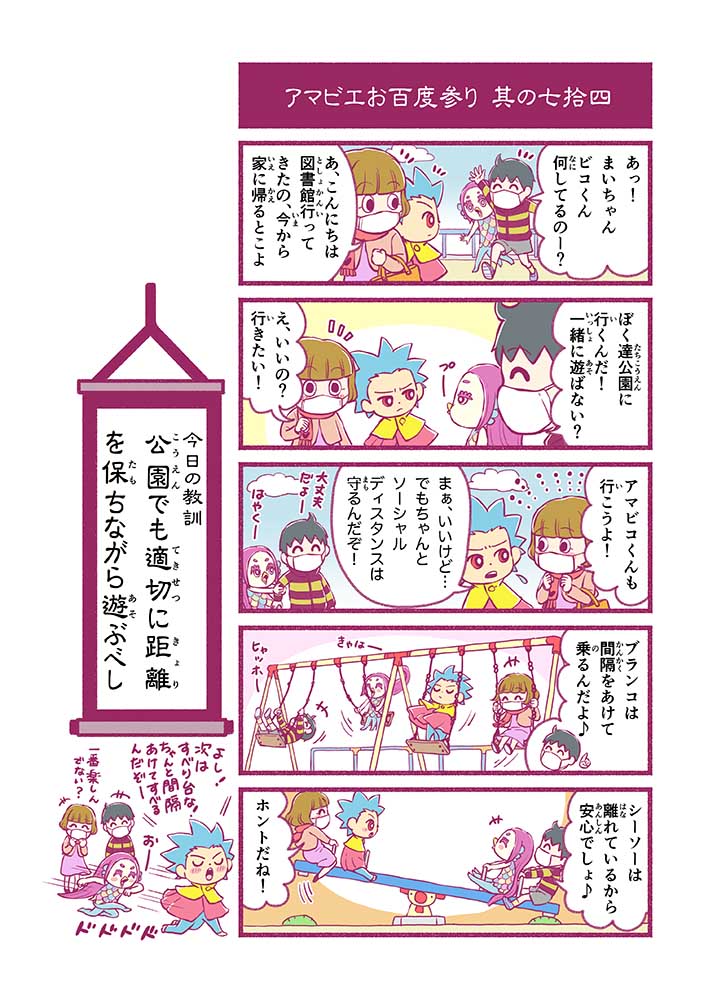 心から叶えたい願いを神様に届ける「御百度参り」をモチーフに100話マンガとして制作しました。 疫病を予言しその予防に備えるように発信したとされる伝説の妖怪アマビエちゃんとともに、新型コロナウイルス対策の一環となるような100作の感染予防マンガを配信しました。