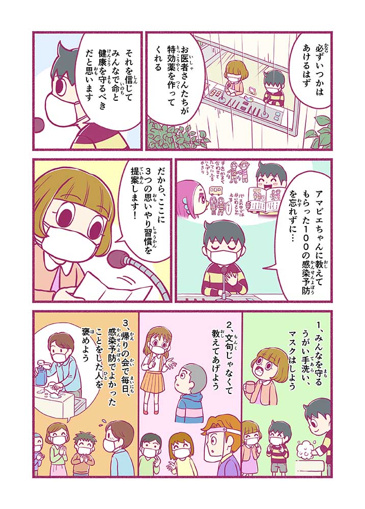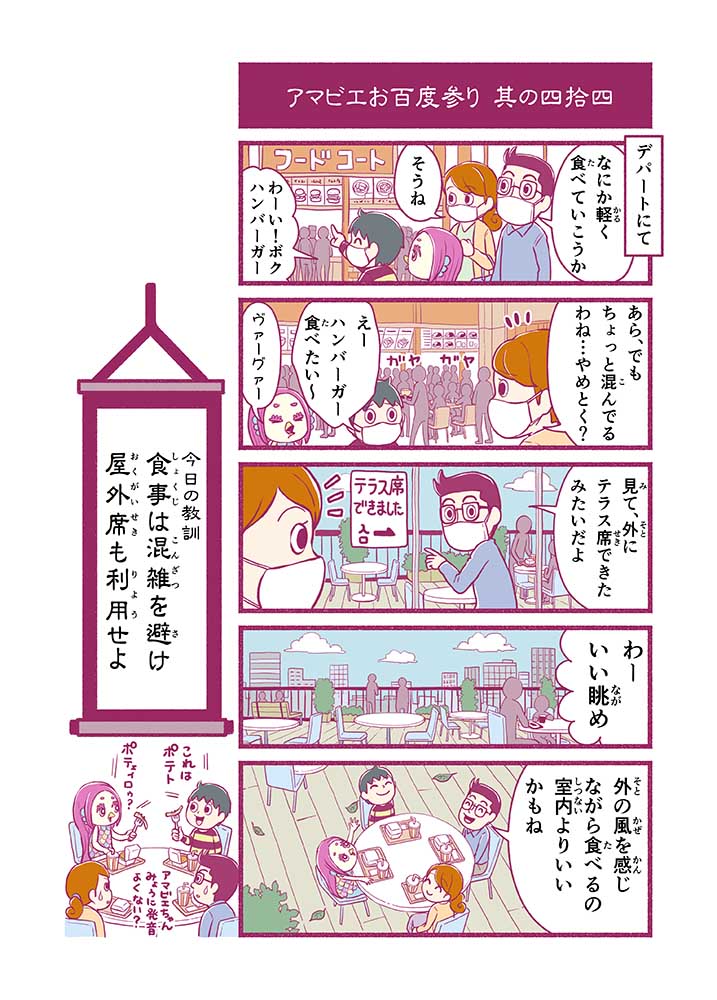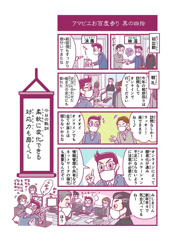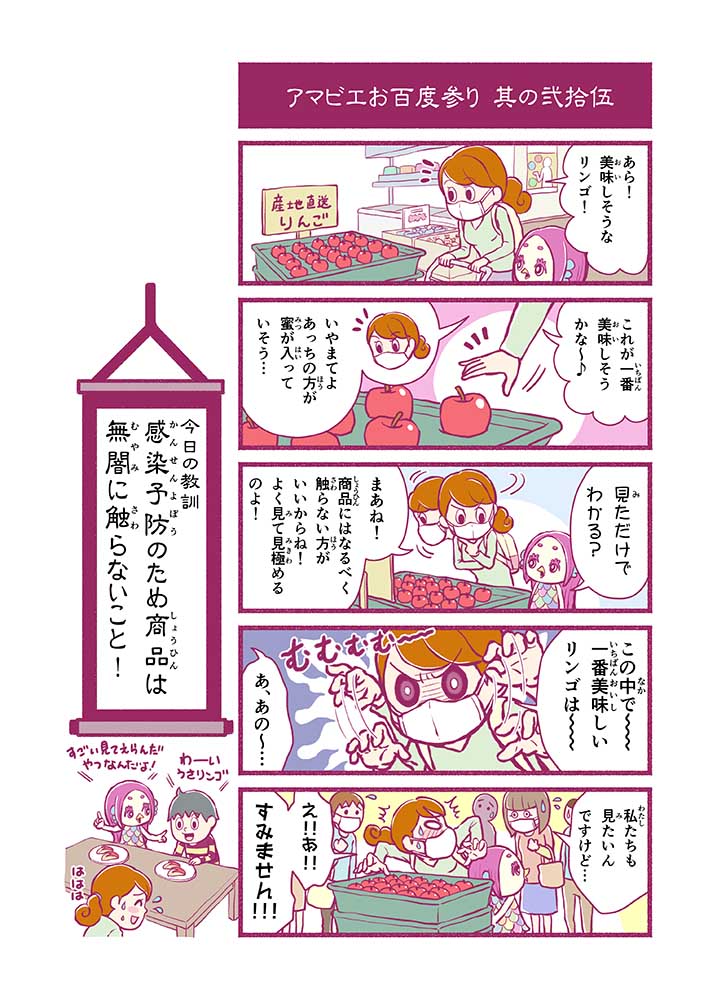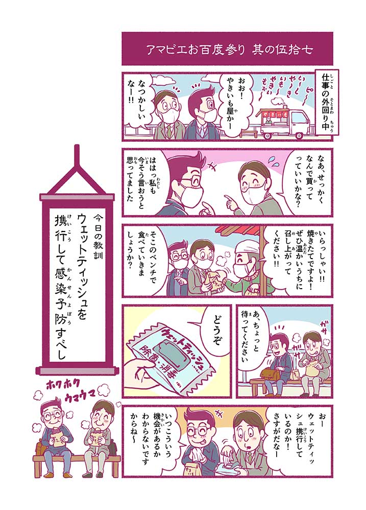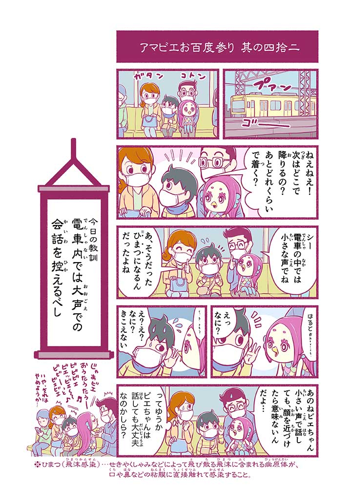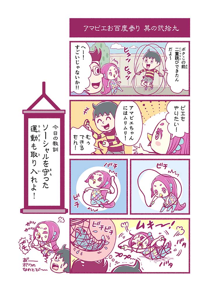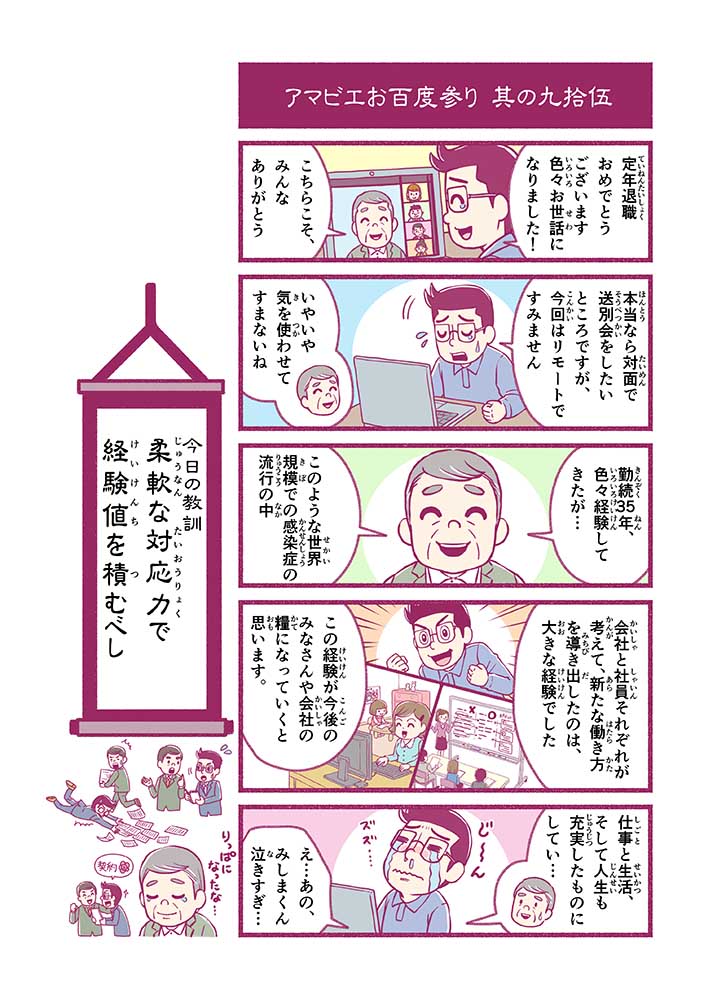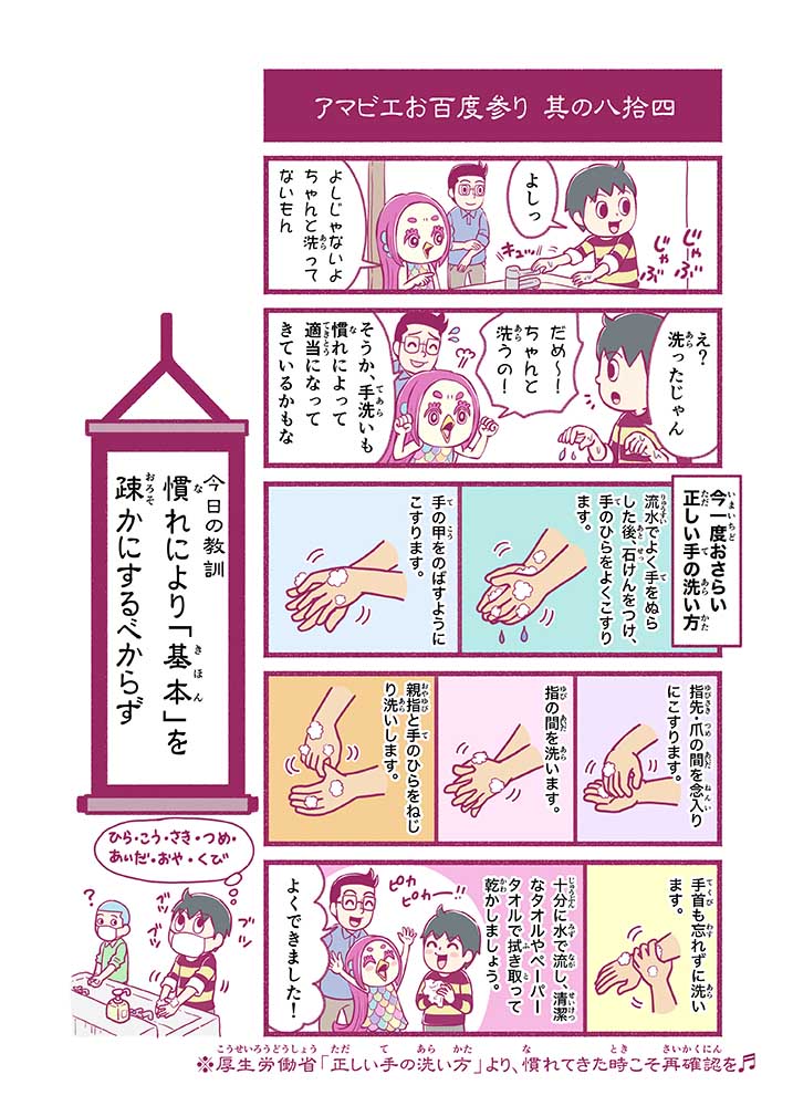 心から叶えたい願いを神様に届ける「御百度参り」をモチーフに100話マンガとして制作しました。 疫病を予言しその予防に備えるように発信したとされる伝説の妖怪アマビエちゃんとともに、新型コロナウイルス対策の一環となるような100作の感染予防マンガを配信しました。