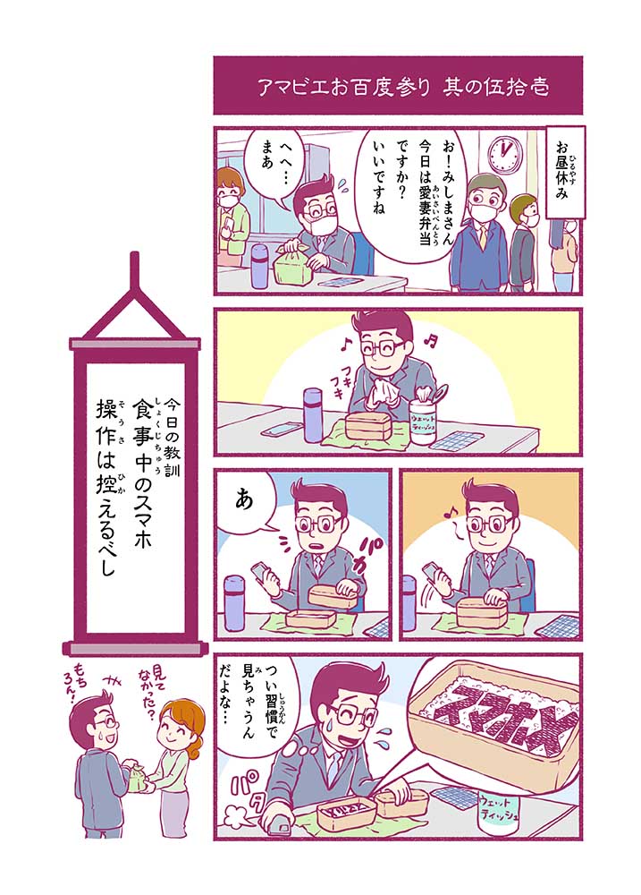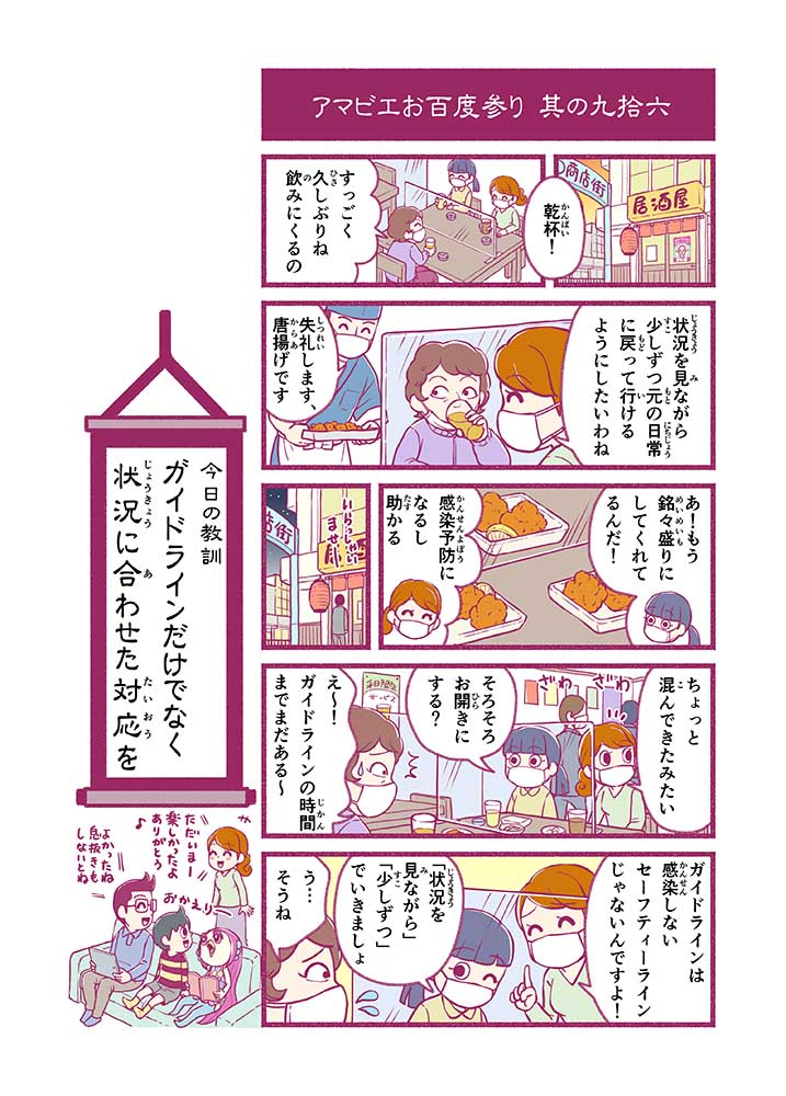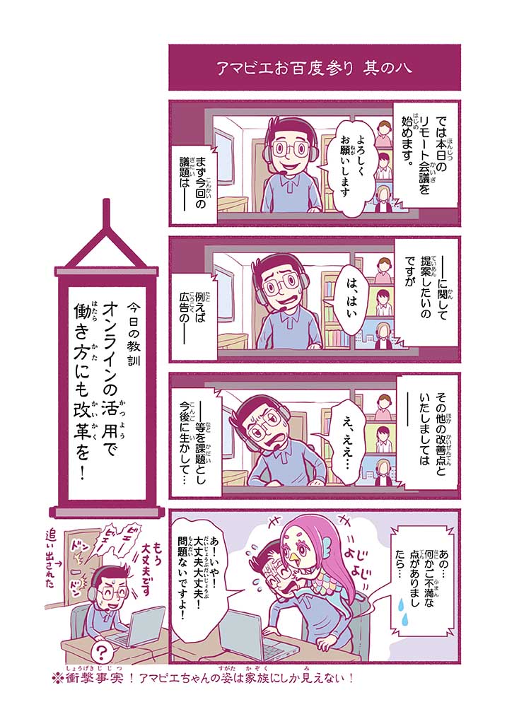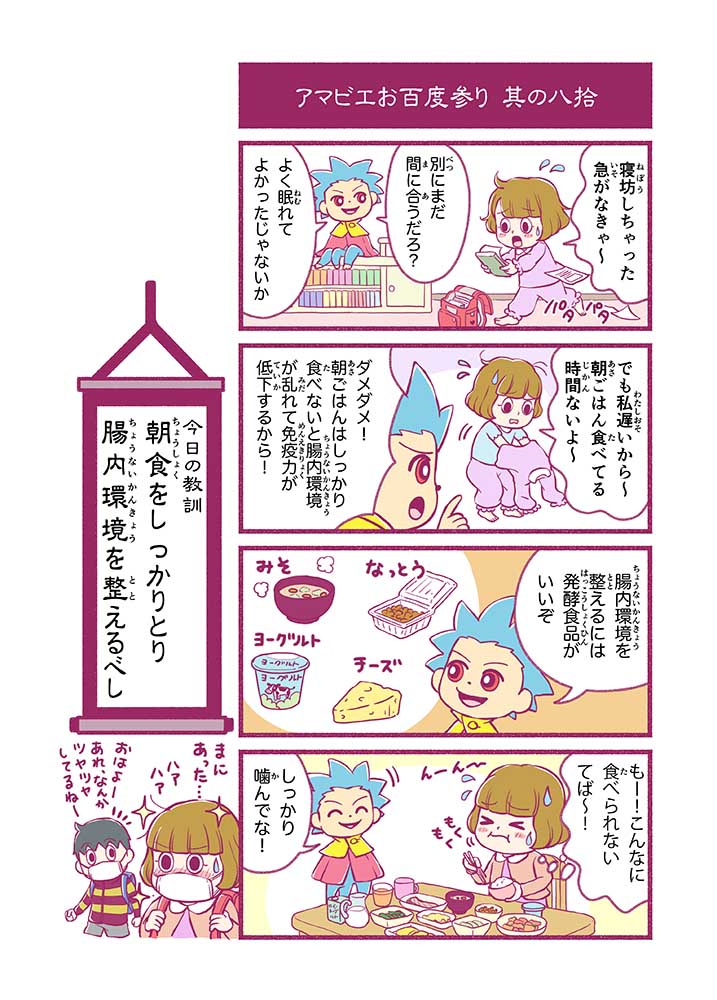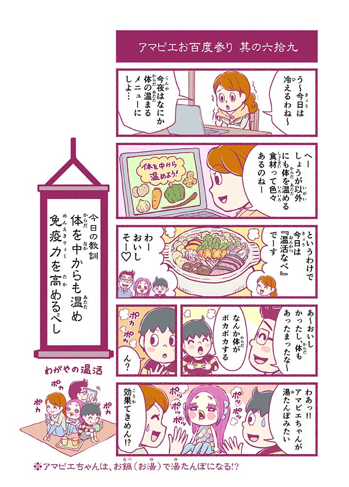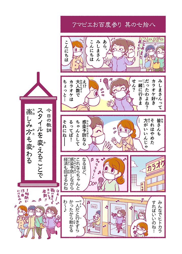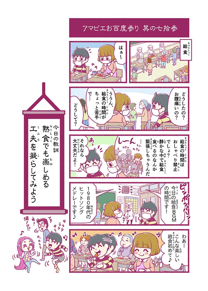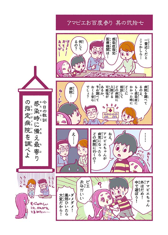心から叶えたい願いを神様に届ける「御百度参り」をモチーフに100話マンガとして制作しました。 疫病を予言しその予防に備えるように発信したとされる伝説の妖怪アマビエちゃんとともに、新型コロナウイルス対策の一環となるような100作の感染予防マンガを配信しました。