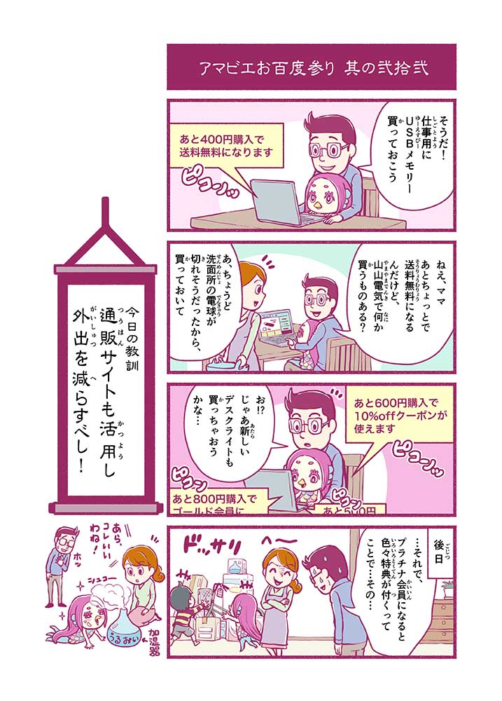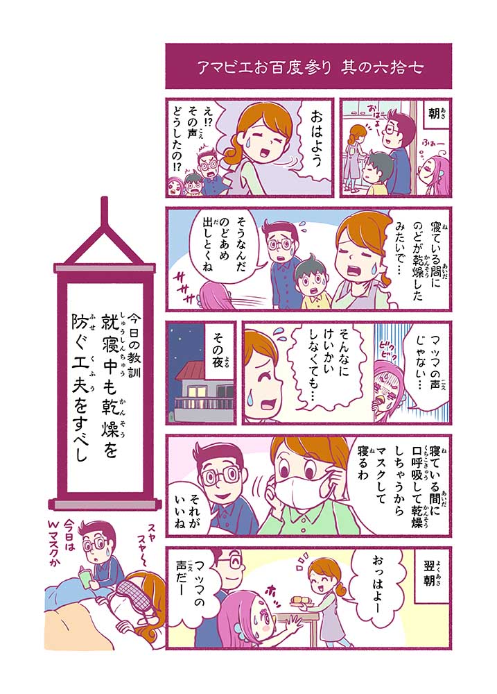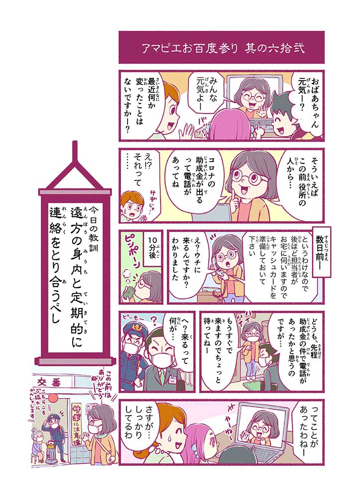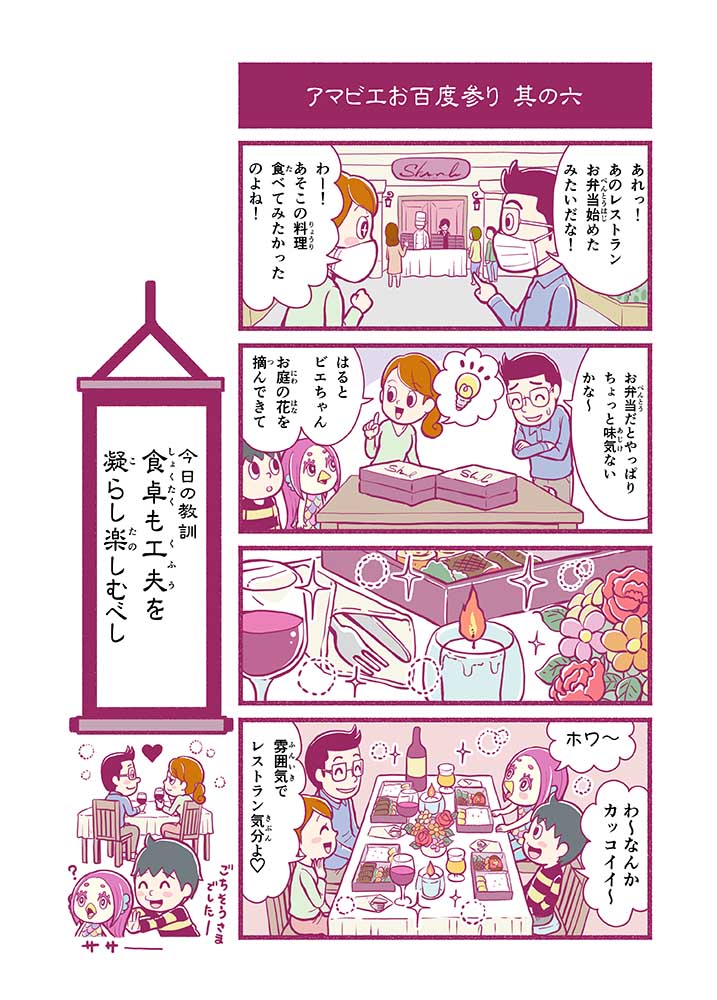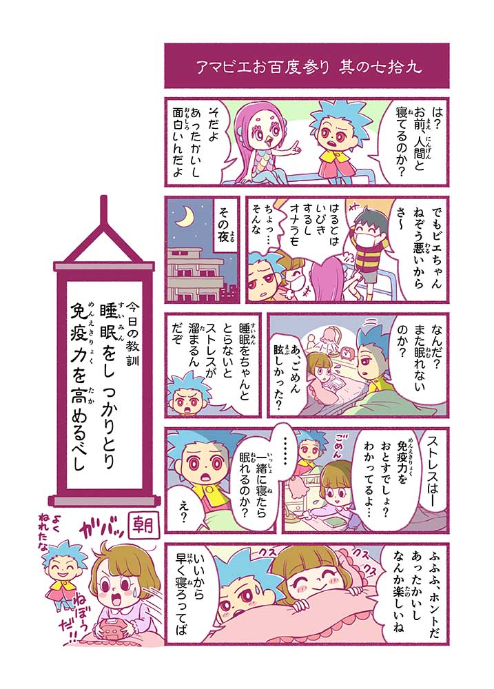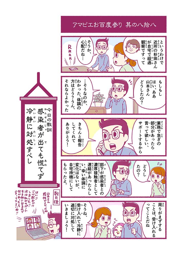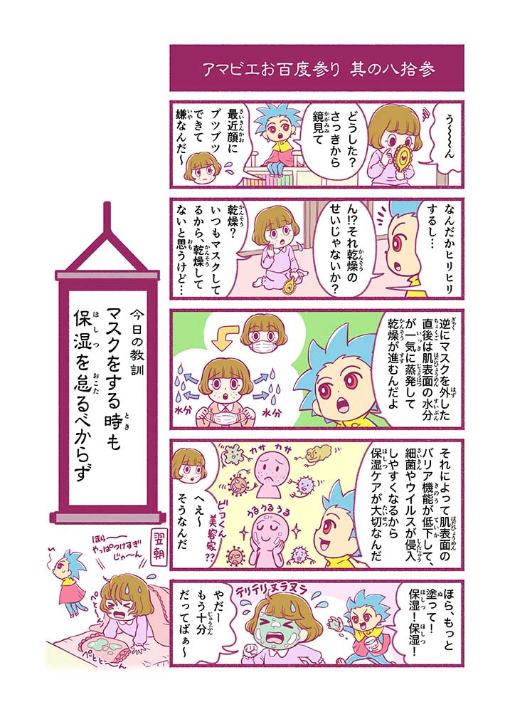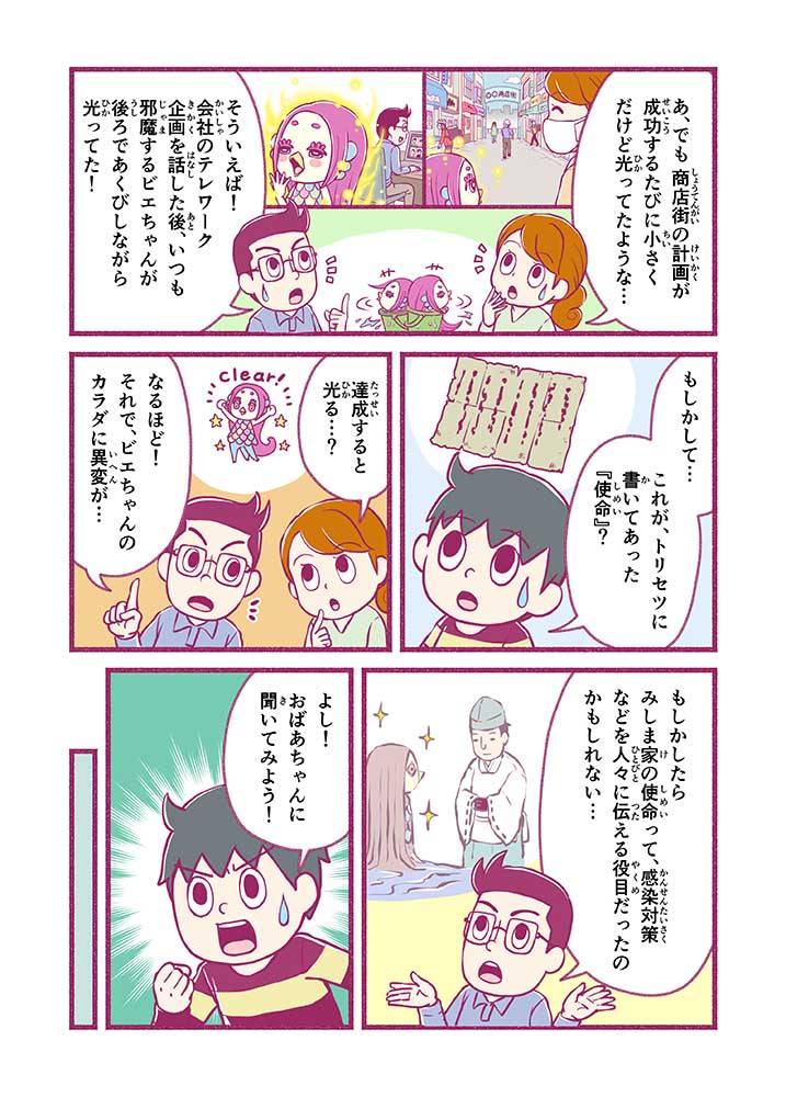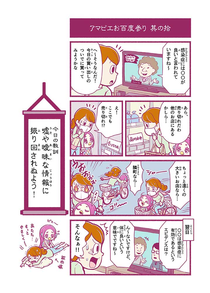心から叶えたい願いを神様に届ける「御百度参り」をモチーフに100話マンガとして制作しました。 疫病を予言しその予防に備えるように発信したとされる伝説の妖怪アマビエちゃんとともに、新型コロナウイルス対策の一環となるような100作の感染予防マンガを配信しました。