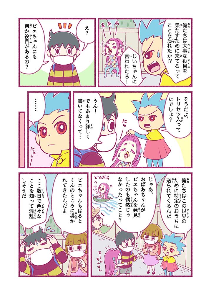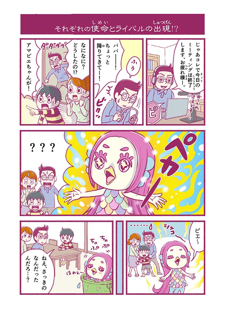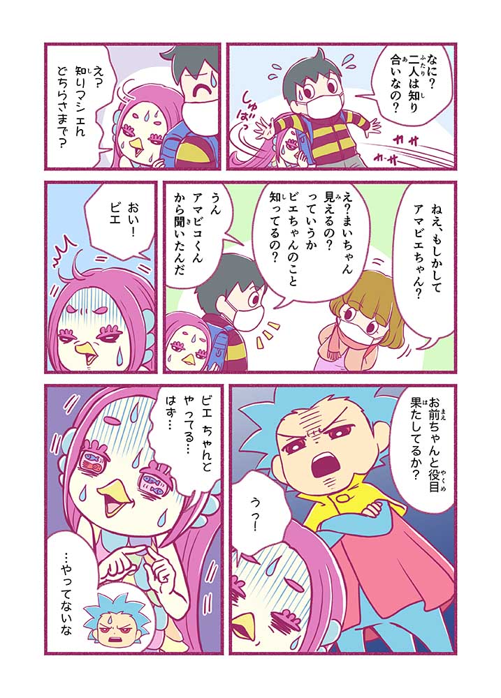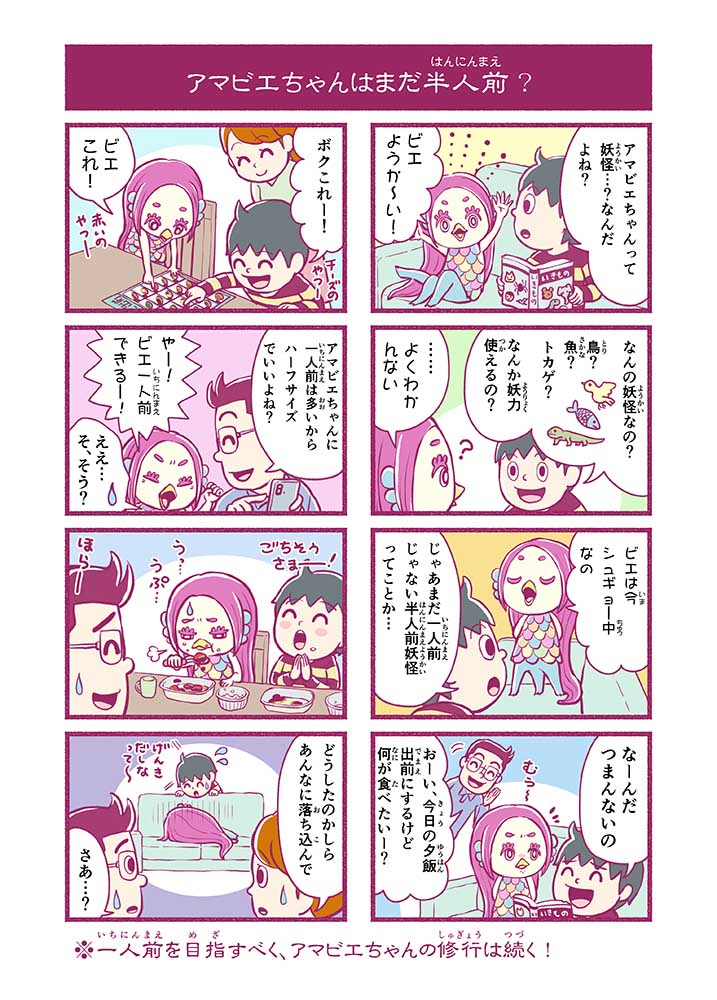 謎に包まれた妖怪『アマビエ』の末裔。おじじさまからの世界を救う命を受け、一人前になるべく、みしま家で修行中。だがマイペースすぎて自分の使命も忘れがち。おじじさまが怖い。