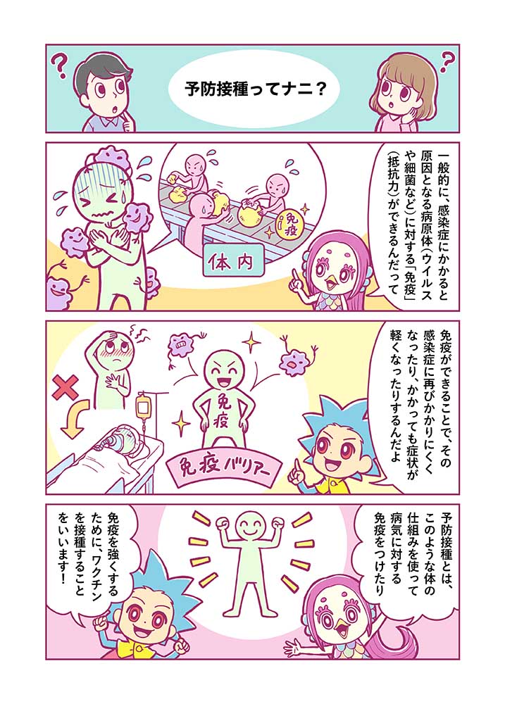 国内で新型コロナワクチン接種がはじまったことを受け、ワクチンについての解説マンガを制作しました。「予防接種ってどういう仕組み?」などの疑問についてアマビエちゃんとアマビコくんがわかりやすく解説します。